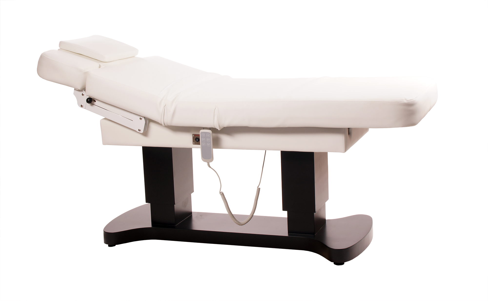 Per Fernbedienung lassen sich die Höhe der Liegefläche, das Kopfteil, mit dem verschließbarem Gesichtsausschnitt, und die Dachstellung bequem anpassen. Die drei leistungsstarken Motoren laufen leise und sanft. Höhenverstellbare Armauflagen und die sehr bequeme Unterlage sorgen für einen hohen Liegekomfort.